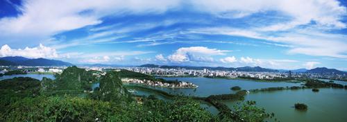 肇庆是粤港澳大湾区面积最大和最具潜力的主体城市,位于广东省中西部、西江中游,东接广州、佛山,西与广西接壤,是大湾区唯一与大西南地区接壤的城市。全市面积1.5万平方公里,户籍人口444万,下辖端州、鼎湖、高要3个区,广宁、德庆、封开、怀集4个县,代管县级的四会市,设立了肇庆国家高新区、肇庆新区、粤桂合作特别试验区。
