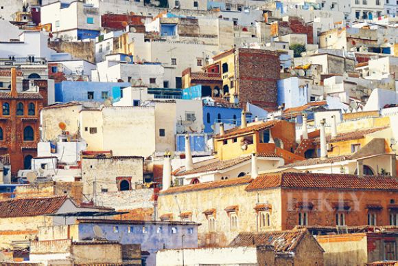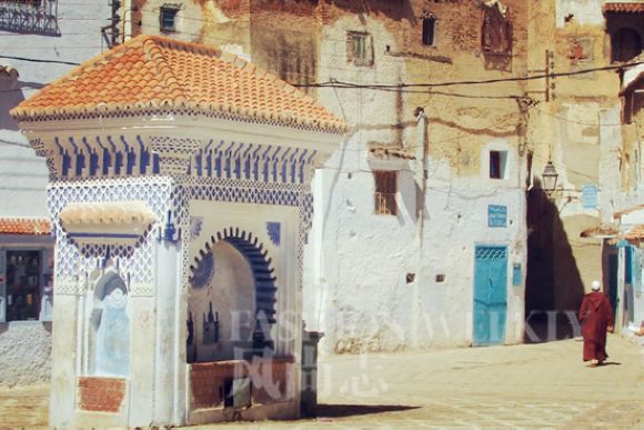 舍夫沙万,摩洛哥西北部一个精致美丽的山城。悠悠地走进这里,踩在细碎不规则的鹅卵石路上,童话般的世界近在眼前。碎步沿街道上的拱形土墙门拾阶而上,于是,大片大片蓝色开始映入眼帘,迷惘梦幻铺天盖地。