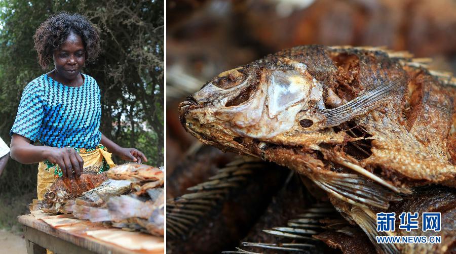 非洲的饮食文化别具一格,质朴而狂野,不同国家、不同民族的饮食特征也极具地方特色。肯尼亚人爱吃炸鱼,他们将新鲜的罗非鱼放入油锅中用旺火煎炸,鱼肉外焦里嫩,香气四溢,大街小巷随处可以见到卖这种炸鱼的小摊。左图:一名摊主在肯尼亚首都内罗毕街边兜售炸鱼。 右图:刚出锅的炸鱼。(拼版照片,摄于2014年6月4日) 新华社发