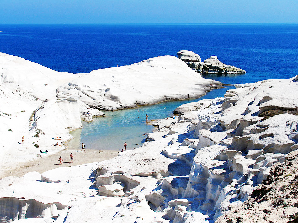 位于米洛斯岛的莎拉基尼可海滩(Sarakiniko Beach)