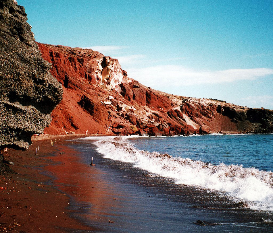 当你坐在红色海滩的红色沙子上时候,抬头便能看见因富含铁元素而呈现出红色的岩石高高耸立在悬崖峭壁上。根据大众的经验分析,这个海滩游客数量众多,但是特别推荐大家在此试一试潜水,因为这一海域附近的海洋生物种类十分丰富。