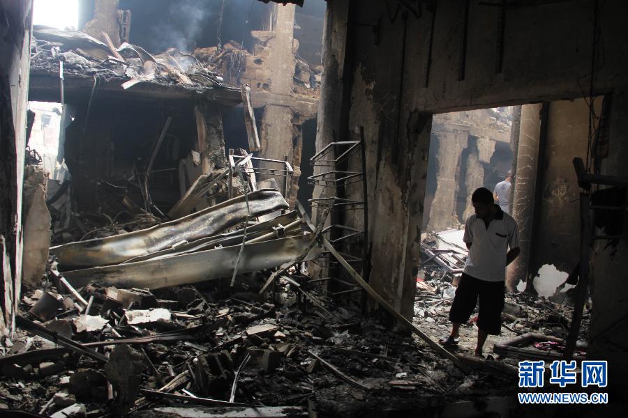 8月24日,在加沙地带南部城市拉法,人们查看被以军空袭炸毁的大楼。 23日,以色列首次以高层民宅为目标进行空袭,摧毁加沙城一栋12层住宅。数小时后,以方24日晨再度空袭摧毁拉法一栋7层办公楼,严重损毁加沙地带一栋两层购物中心。美联社称,以方近日军事打击传递冲突升级的信号,打击大型建筑似为以色列新战术内容。新华社发(哈立德·奥马尔摄)