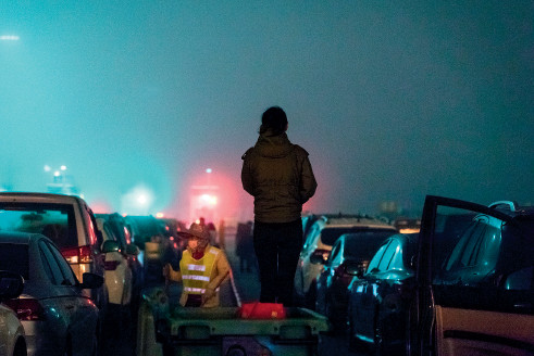 2018年2月20日, 海口受持续大雾影响,海南离岛车辆严重受阻,三港附近滞留了过万部离岛车辆。视觉中国