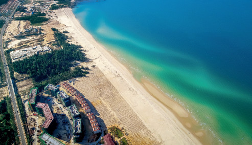 2018年1月18日,海南昌江,航拍棋子湾群升海滩酒店项目进行海岸带复绿工程。视觉中国