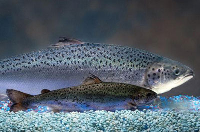 被转入的基因一种来自大鳞大马哈鱼,大鳞大马哈鱼其实也是一种三文鱼,外形和大西洋三文鱼类似,亲缘关系也很近,生活在太平洋,也会洄游。另一个被转入的分子开关来自美洲大洋鳕鱼,用来调节生长激素的合成。