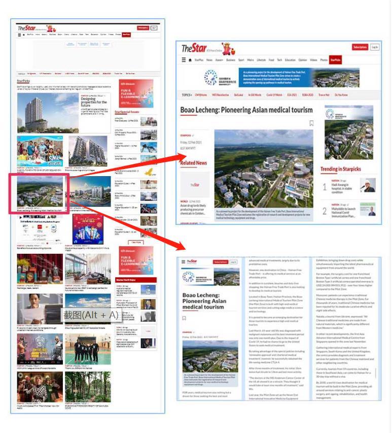 ↑马来西亚《星报》官网刊发博鳌乐城消息截图。
