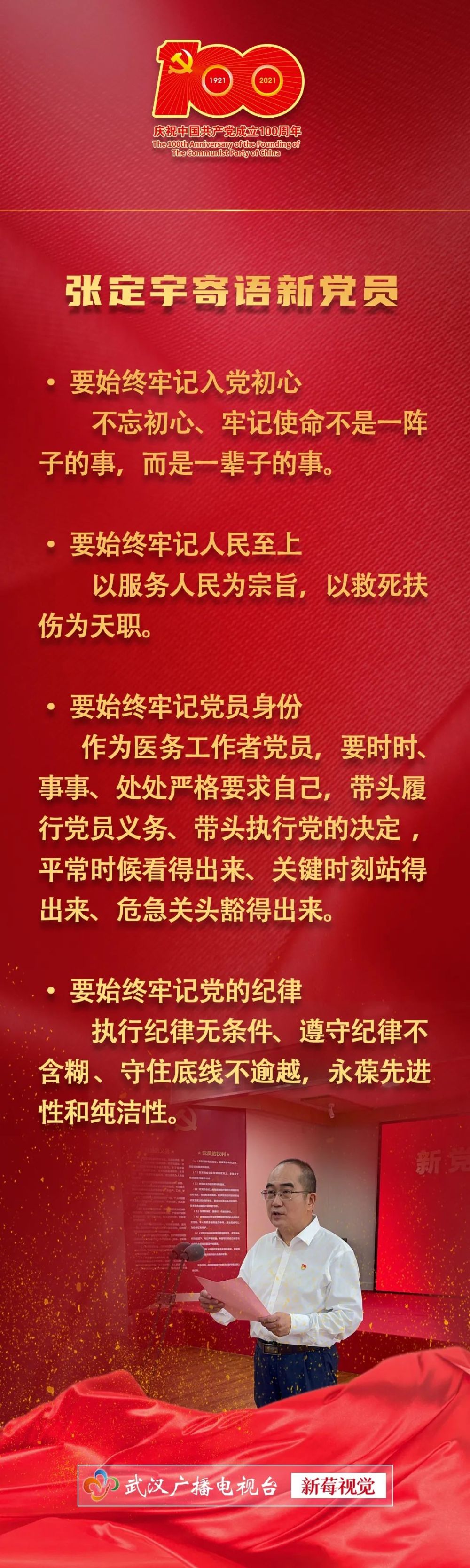入党宣誓仪式上,人民英雄张定宇领誓,一句句铿锵有力誓言,一张张坚毅的面容,传递了新党员的初心使命。