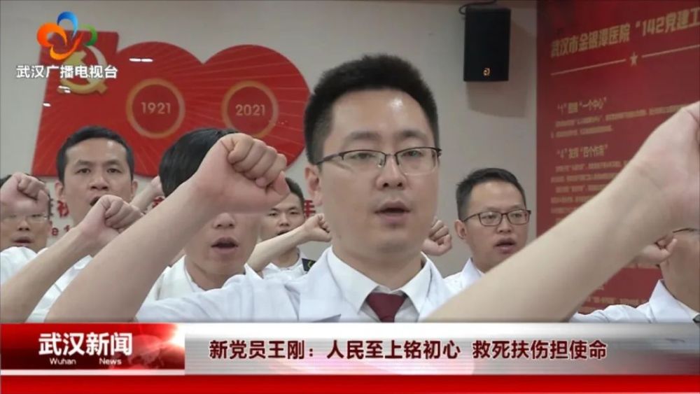 现场,武汉市精神卫生中心的80后医生王刚高举右拳,眼神坚毅,他说,入党既是圆梦,也是为了更好地实现救死扶伤的理想。