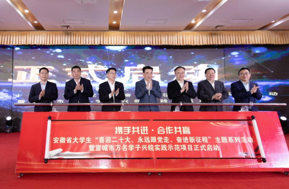 5月23日,安徽省大学生“喜迎二十大、永远跟党走、奋进新征程”主题系列活动暨宣城市万名学子兴皖实践示范项目在宣城启动。省内外150所高校分管领导,团委、就业等部门负责人,以及高校毕业生,共计33.26万人次通过视频会议方式参加活动。