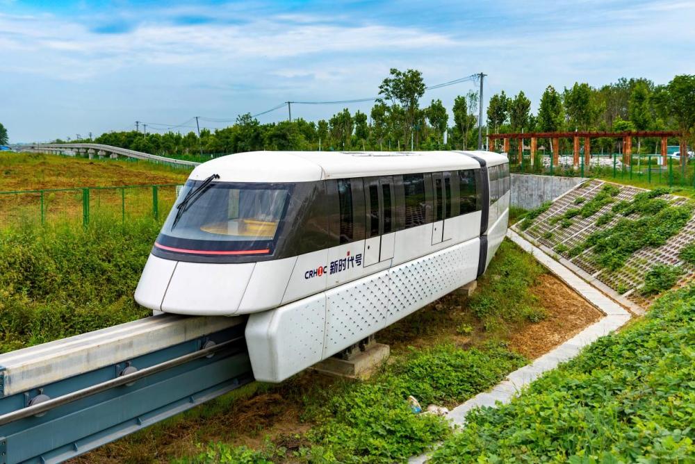 肥东县中铁(合肥)新型轨道交通智能制造基地内,跨坐式单轨列车进行试验