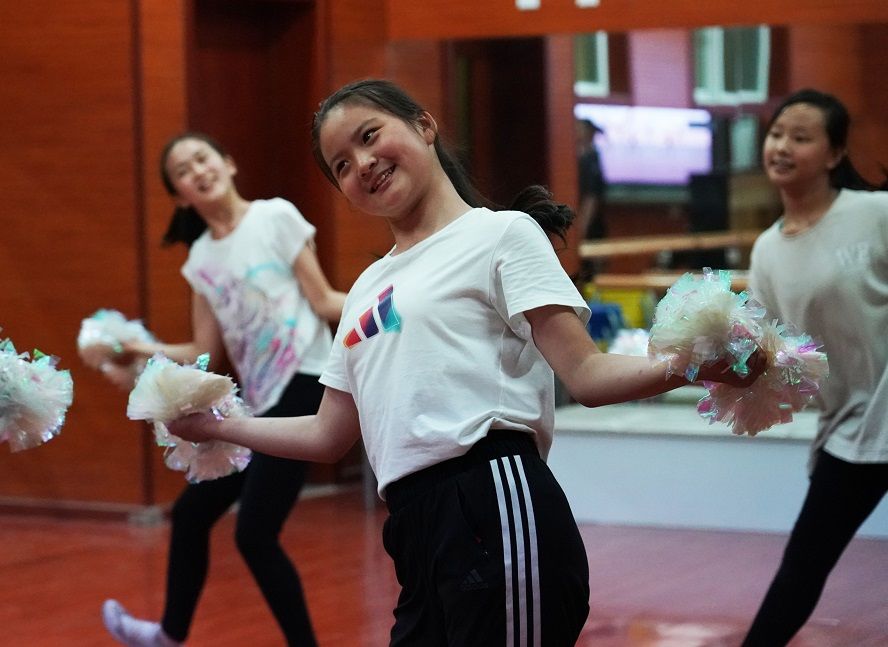 在西城区自忠小学,学生在课后服务时间开展拉拉操活动 任超 摄