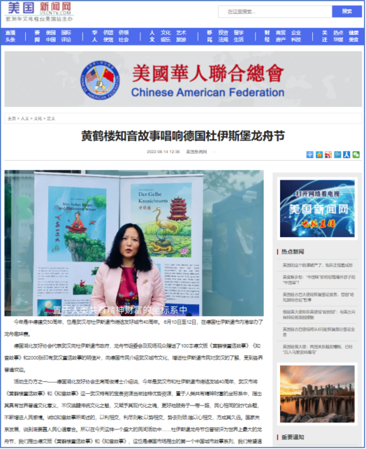 2022年6月,在杜伊斯堡举办的号称全球最大的趣味龙舟赛上,武汉将德文版绘本《黄鹤楼童话故事》《知音故事》和印有武汉童话故事的明信片赠送给杜伊斯堡市政府、龙舟节组委会和现场观众。赠书活动活动采用“跨国连线+现场直播”的传播形式,超过55万中德友人在线观看,获赞过万,境内外媒体对此次活动也给予充分关注。