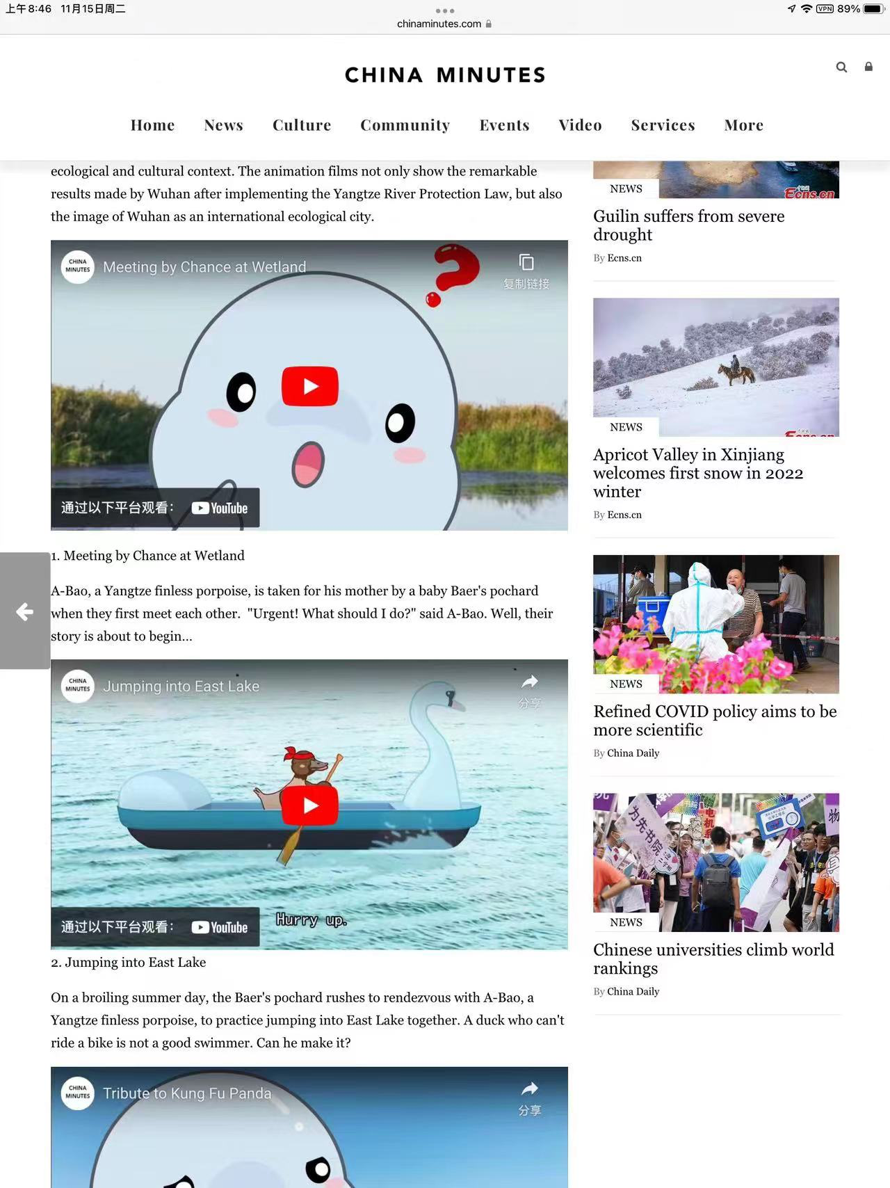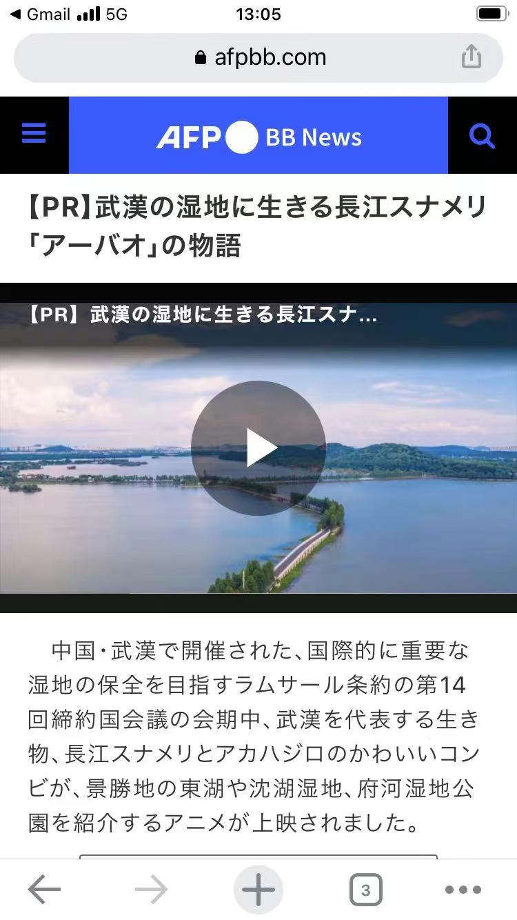 欧洲时报网站和法新社日本网站报道《江豚阿宝讲湿地故事》