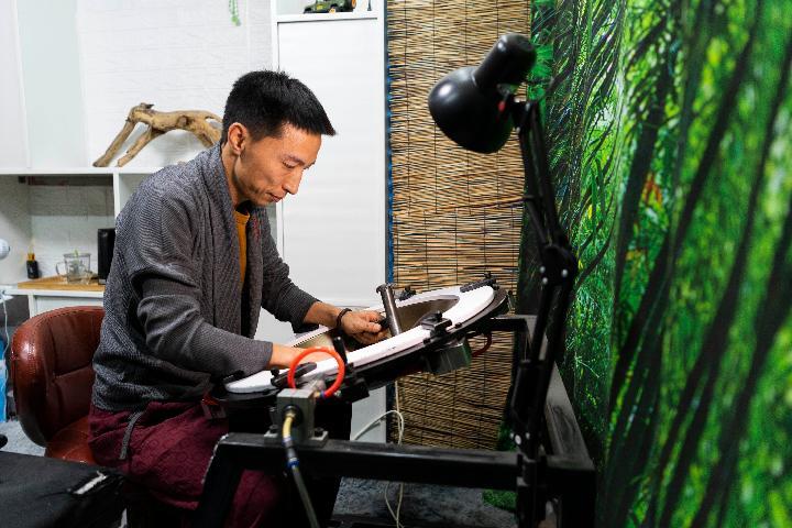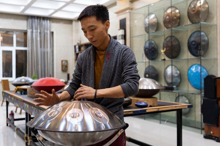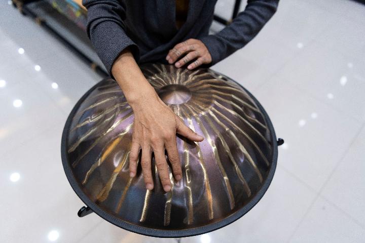 2015年,他在北京参加一次展会期间,见到一名外国人在即兴演奏一个类似铁锅的乐器。“这种乐器叫手碟,发出的声音具有直抵人心的力量,之前只在报纸上见过,现场聆听觉得十分新奇。”宫关说,他辗转联系到这名演奏者,并从其手中高价买回了一支手碟。