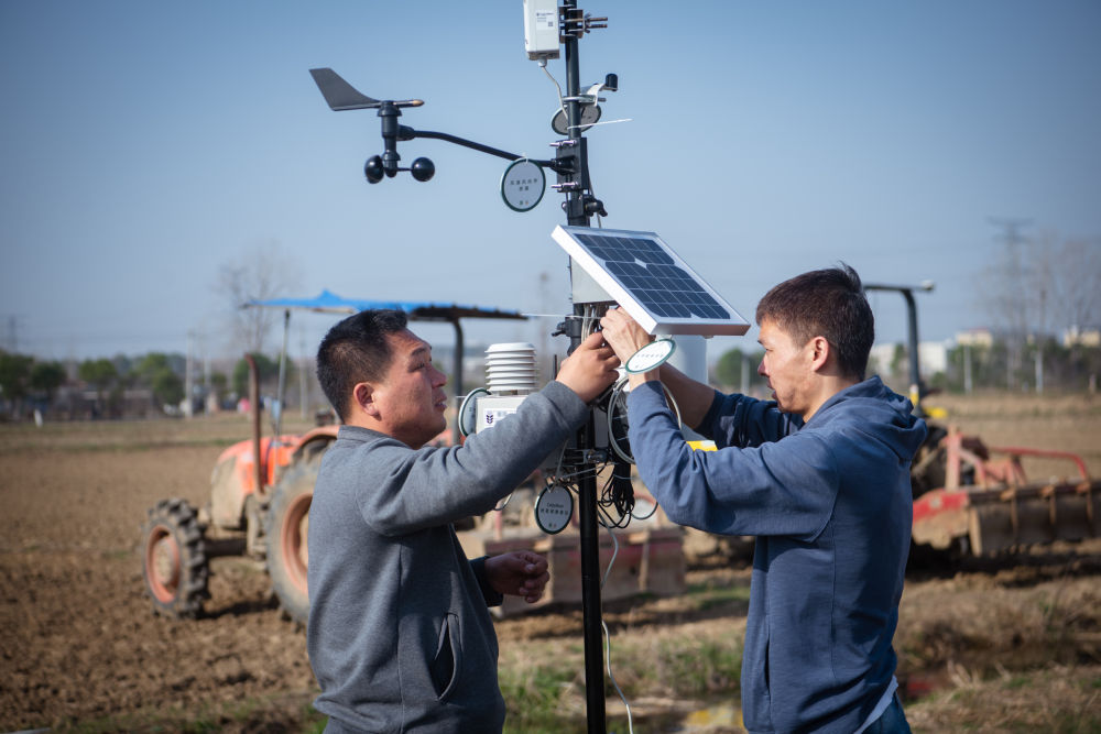 3月15日,工作人员正在田边调试气象监测设备。新华社记者 伍志尊 摄