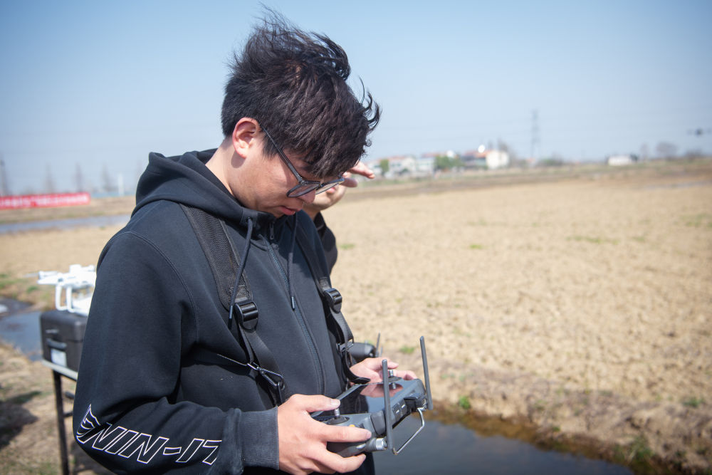 3月15日,武汉永旺农产品专业合作社的农机手陶哲在操作无人机。新华社记者 伍志尊 摄
