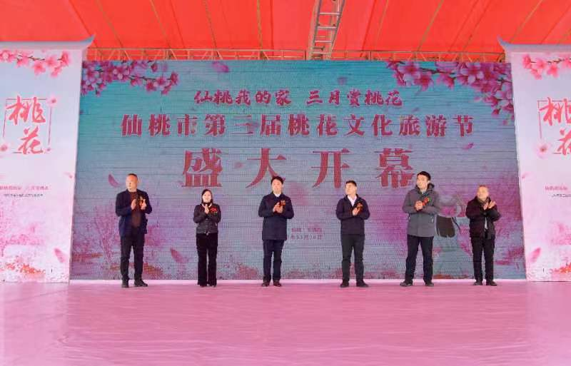 人间三月芳菲尽,枝头桃花始盛开。3月18日,来自全国各地的6000多名赏花人,流连在撩人心扉的烂漫花海,与粉红娇艳的十里桃花相映成趣,仙桃市人民政府副市长颜志超在此间宣布仙桃市第三届桃花文化旅游节盛大开幕,活动举办地长埫口镇镇长李福鹏致词欢迎四方游客,由当地文艺工作者表演的花鼓戏、汉服秀等节目为大家献上了丰盛文化大餐。