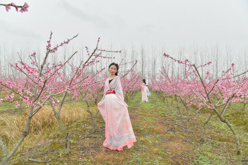 “等到六月桃子熟了的时候,我们还会结伴而来。”看到粉红似云、蔚为壮观的桃花海,来自武汉生物工程学院的学生黄亚兰和其他20个小伙伴兴奋不已,她们身着汉服,游走其间,感受春光桃林的美艳与惬意,拍摄青春如花的倩影靓照。