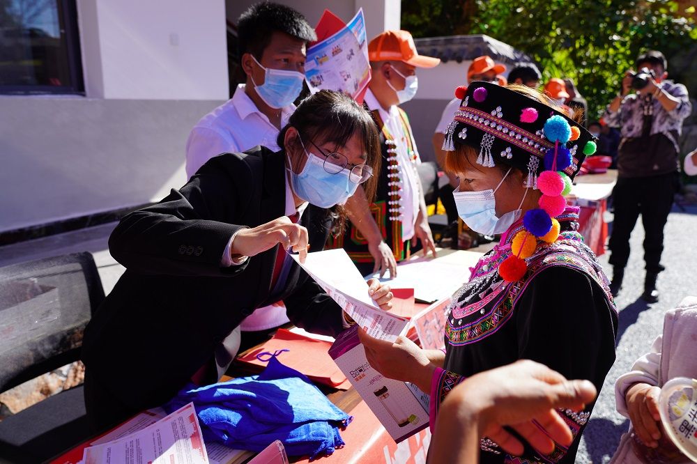 绿春法院“共享法庭”干警向少数民族群众开展普法宣传。