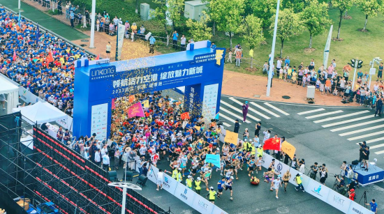 2023年武汉“航城”健康跑在武汉空港国际商务新城空港中心鸣枪开跑。 缪德杰 摄