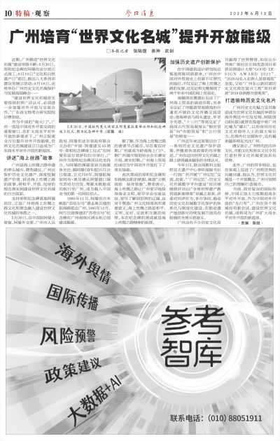 近期,广州推动“世界文化名城”建设举措不断:5月30日,郑和纪念碑在阿曼佐法尔省正式竣工;6月10日“文化和自然遗产日”前后,推出八大系列非遗宣传展示活动;6月19日,还将举办广州历史文化名城保护与发展高端峰会……