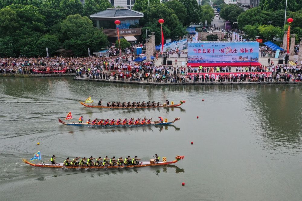 当涂县已连续举办十一届龙舟锦标赛、两届南京都市圈邀请赛,当涂龙舟锦标赛入选“2022中华体育文化优秀项目”的优秀民俗民间项目,成为当涂一张有声有色的“名片”。(陶宗琴)