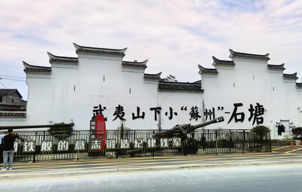 走近石塘村,“武夷山下‘小苏州’”七个大字立即“跃”入眼帘,近处是白墙黛瓦,抬眼是青山如画,一幅江南水乡模样。