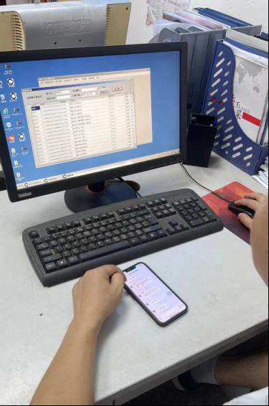 连锁知名品牌中央厨房从业人员操作“溯源码”系统录入原料信息
