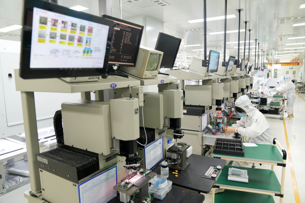 在位于穆棱市的北一半导体模块封装无尘车间里,呈现出一派繁忙的生产景象,机器一刻不停地运转,操作人员紧盯电脑,监测着生产线的运行。