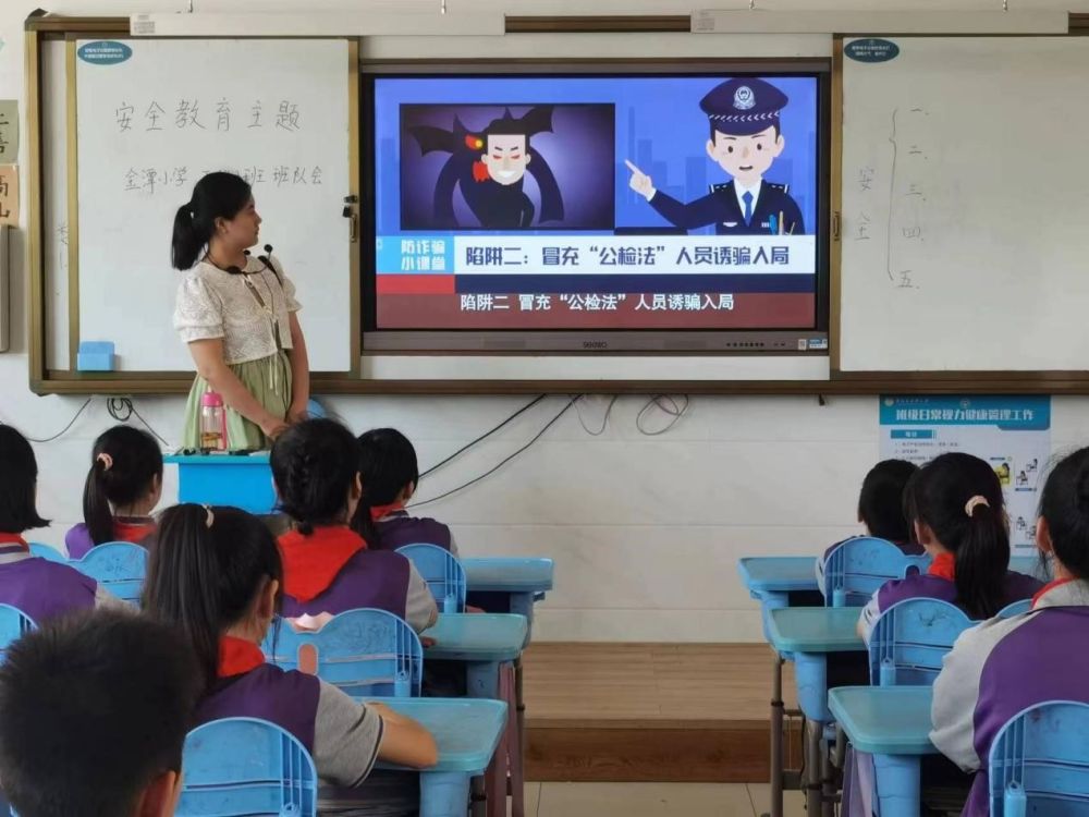 “同学们,天上不会掉下馅饼,不要轻信所谓的高额回报,更不要轻易点击陌生网络链接……”9月15日,武汉市黄陂区金潭小学三、四、五年级的孩子们在教室里观看了《中小学德育课堂》节目,并以安全教育为主题上了一堂特别的班会课。动画视频讲解、真人短剧演绎、纪录片再现历史……一堂班会课也是一堂生动的思政课,孩子们在趣味中学习安全知识,理解国家安全含义,提升安全意识。