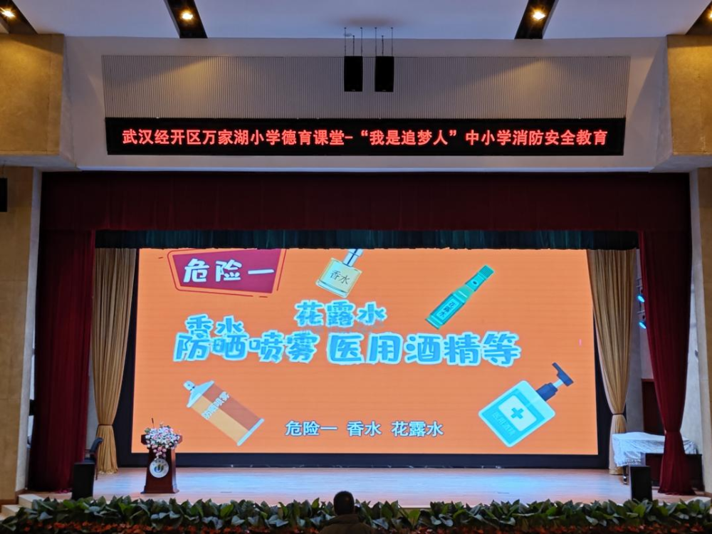 11月9日是第32个全国消防日,为提高中小学校消防安全管理水平,增强中小学生安全自护能力。由武汉经开区教育局主办“新华社《中小学德育学堂》‘我是追梦人’中小学生消防安全教育”主题活动在万家湖小学举行,武汉经开区消防救援大队的消防员代表参与活动,全校一千余名师生、家长同步收看直播。