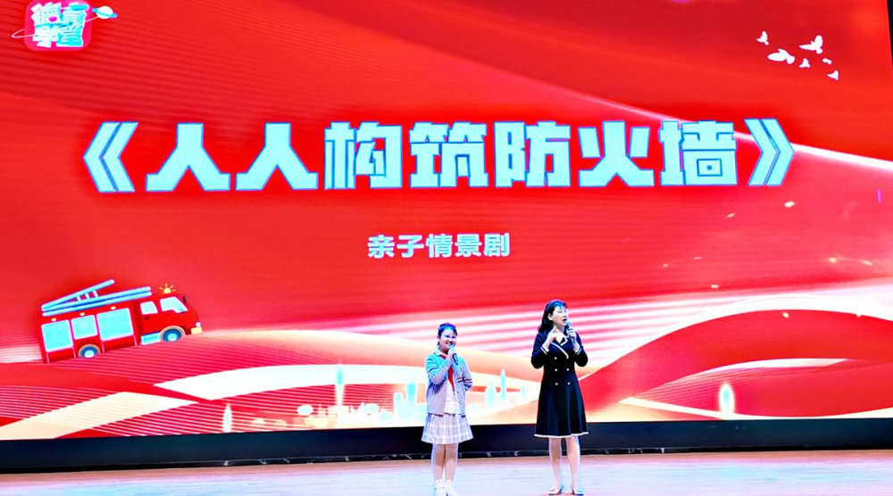期间,学生还表演“消防安全我知道”“教室安全要细心”“生活安全要留心”三幕情景剧,生动演绎细心、守秩序、讲文明的“消防小卫士”;亲子相声“人人构筑防火墙”,通过一个“糊涂妈妈”不知道火灾发生处置流程和一个“机智女儿”扮演消防员指导妈妈顺利逃生的情景,并提醒大家要将所学的消防安全知识传递到身边的每一个人。