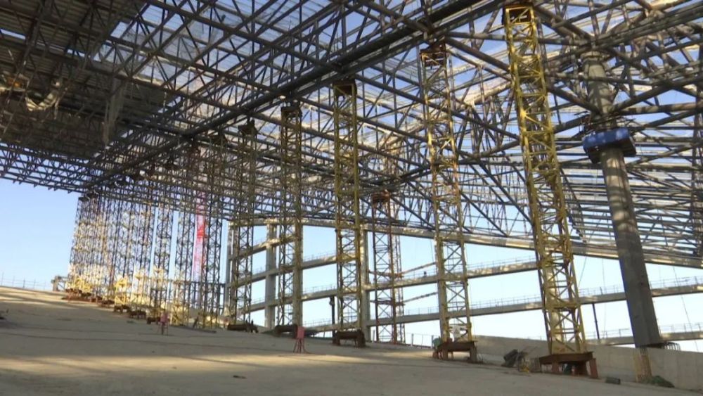 本次提升点16个,提升高度21米,提升重量约600吨。本次提升完成后,标志着甘露山雪世界中低区钢结构整体完成封顶,正式进入制冷造雪转序施工阶段。