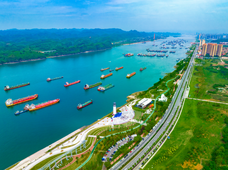 伫立江边,猇亭区南玻路至朱家港路段,一条2公里的滨江生态廊道,蜿蜒起伏,绿意葱茏。目前,从兴发集团宜昌新材料产业园至云池港的长江岸线建设已全面动工。