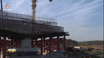 记者谢奇志:我现在是在地铁前川线二期的余彭塆站至横店站区间,在我身后是运营如常的京广线,同时也是上跨铁路高架桥施工现场。下面列车正常运行,紧挨着铁路线,建设者们正在加紧上部墩梁作业。