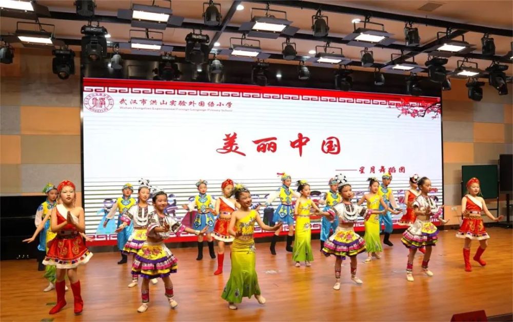 伴随动感的民族音乐,洪山实验外国语小学“星月”舞蹈团带来的舞蹈《美丽中国》,为本次活动拉开序幕。身着蒙古族、彝族、维吾尔族等民族服饰的同学们,用精彩表演展现了美丽中国的壮阔篇章。