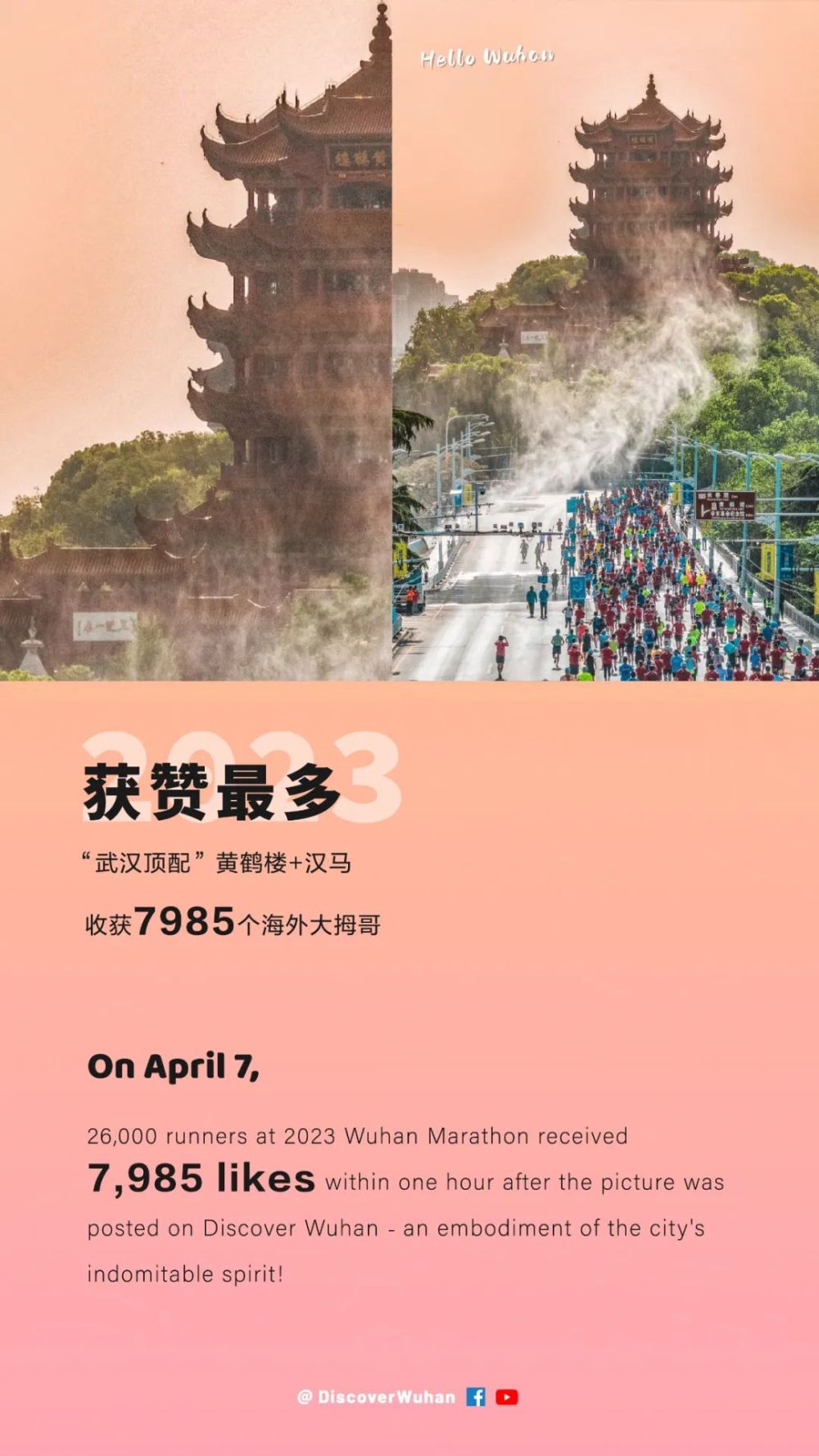 最吸睛汉马提到武汉,就不能不提“晴川历历汉阳树,芳草萋萋鹦鹉洲”“故人西辞黄鹤楼,烟花三月下扬州”,拥有1800多年历史的黄鹤楼是每个人心目中最能代表武汉的文化地标建筑,这张在黄鹤楼下2.6万人齐跑武汉马拉松的图片在“发现武汉”上获得了7985个赞。