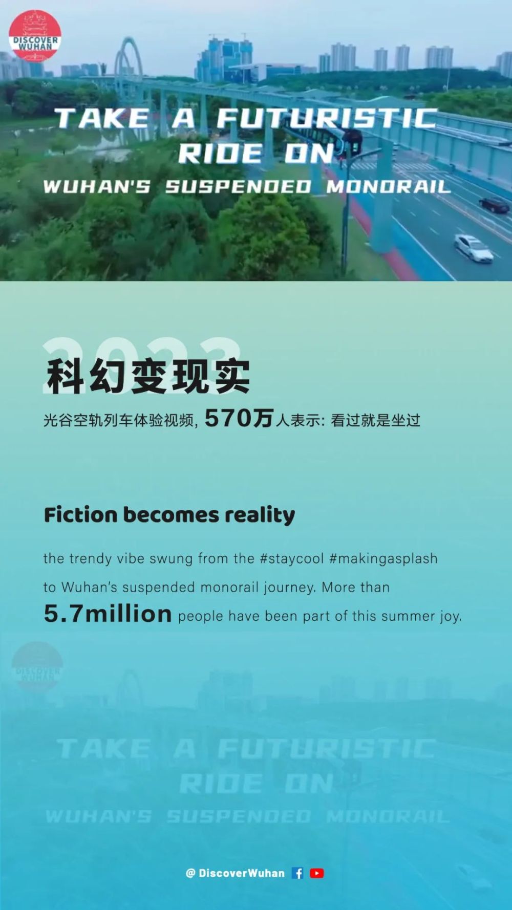 最科技光谷武汉城市里一道独特的风景线,赛博朋克高科技——空轨“光谷光子号”,在蓝天白云的映衬下,乘坐空轨穿梭在城市的高楼大厦之间,那种畅快淋漓的感觉,简直不要太爽!570万人认为光谷空轨光子号太酷啦!