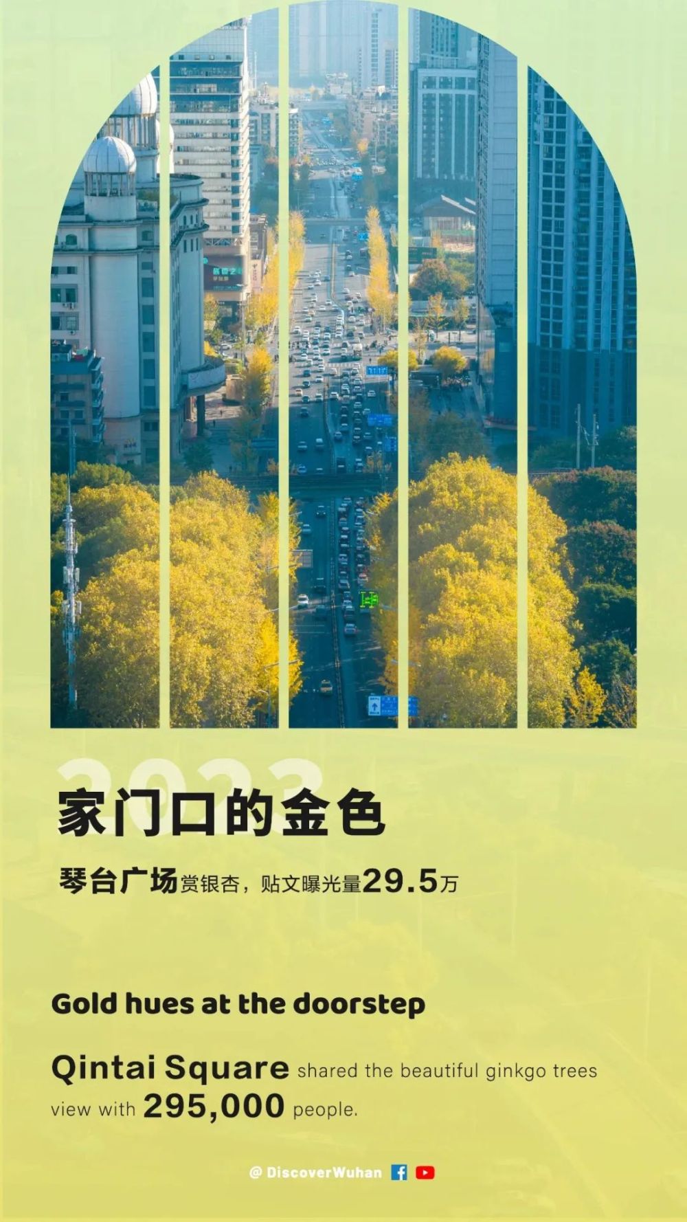 家门口的最美风景琴台武汉人在家门口就能抓住秋天,去琴台公园广场上看银杏,一片金黄中隐隐透出附近的琴台音乐厅、琴台剧院做背景,还有长长的木头栈桥,文艺气息瞬间拉满!在这里拍一组风景大片,分分钟刷爆朋友圈。