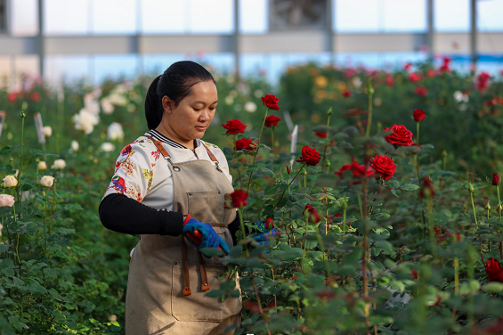 开远国家高效农业产业园盛开的玫瑰(2024年1月9日摄)。