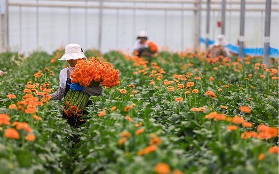随着春节临近,年宵花进入热销季。在红河哈尼族彝族自治州开远市国家现代农业产业园,各花卉基地鲜花绽放,花香弥漫,花农正熟练地将花卉分拣包装,通过冷链物流发往昆明斗南,再发往全国各地。