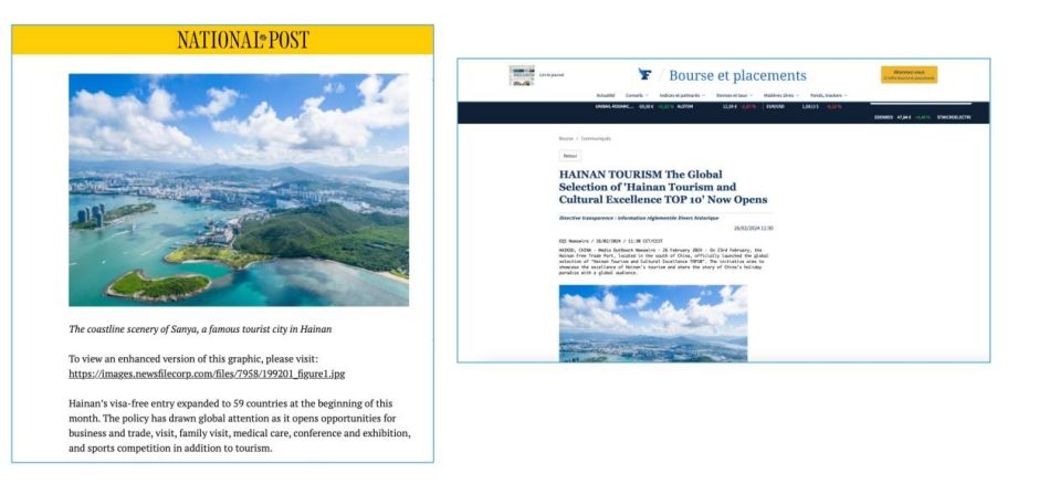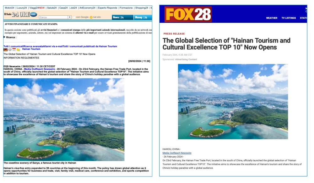 此外,海外主流媒体也关注到了“2024海南旅文精品top10”全球评选活动。法国费加罗报、加拿大国家邮报网、美国福克斯新闻网、纽约时报、新加坡新闻网等超600家海外主流媒体、行业媒体网站纷纷发文,面向全球网友展示海南旅文好物、演绎琼岛精彩、讲述中国故事。