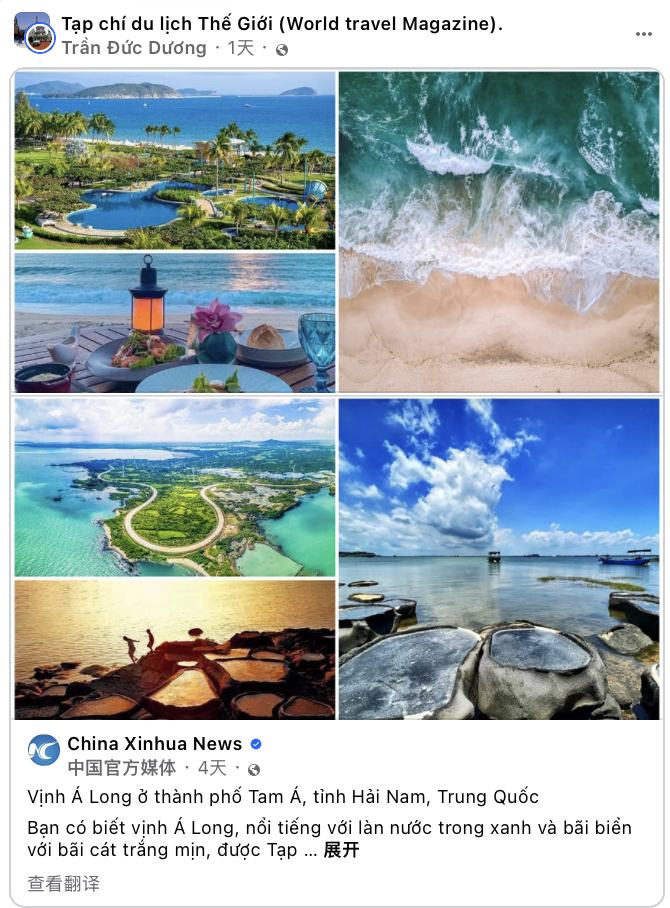 ↑世界旅游杂志(越南版)的Facebook 账号转发本次评选活动推文。