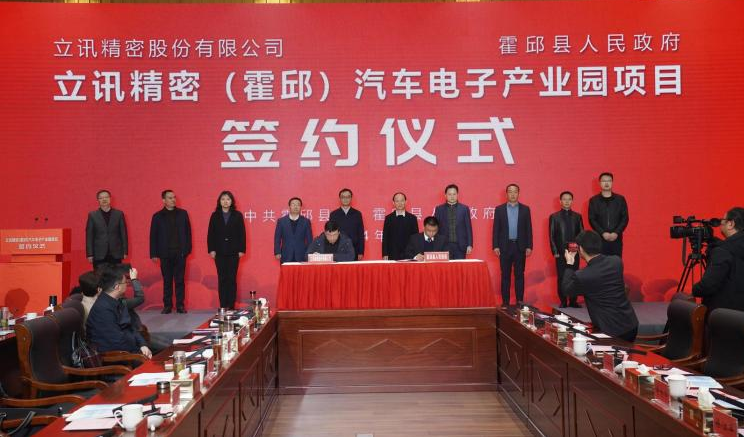 近日,立讯精密(霍邱)汽车电子产业园项目签约仪式举行。