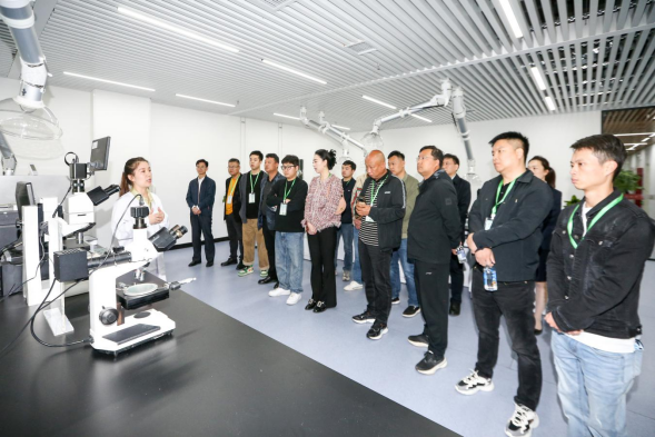 在质检中心实验室参观时,质检员带领大家先后来到综合实验室、天平室、高温室、硫含量检测室、精密仪器室、辛烷值室等工作区域以及用于油品质检的各类仪器设备,观察优劣质油样,观摩质检员演示硅元素的检测、柴油润滑性试验和辛烷值试验等。
