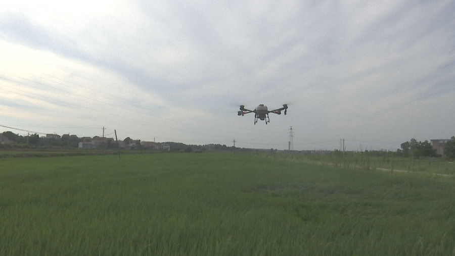 记者走进横店街寅田村,只见新改造的300亩农田上,植保无人机正在为水稻精准喷洒农药,上演了一场现代农业“盛宴”。寅田村党支部书记谌瑾兴奋地说:“眼下正是水稻分蘖生长的关键时期,要为水稻披上一层‘保护伞’,有了科技加持,今年秋粮丰收指日可待。”
