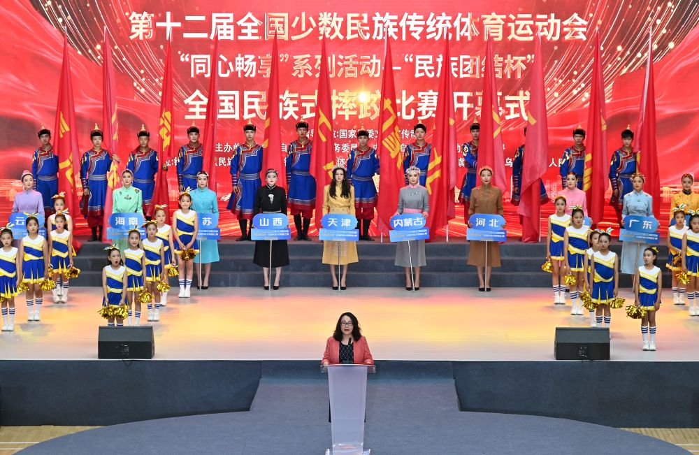 内蒙古自治区民委党组成员、副主任康宇凤致开幕辞并宣布比赛开幕。她表示,“民族团结杯”全国民族式摔跤比赛是第十二届全国少数民族传统体育运动会“同心畅享”系列活动之一,赛事活动紧紧围绕铸牢中华民族共同体意识主线,传承中华优秀传统文化,弘扬中华体育精神,积极打造各民族交往交流交融的平台,助力建设中华民族共有精神家园,充分契合运动会“民族团结的盛会、群众体育的盛会”基本定位。