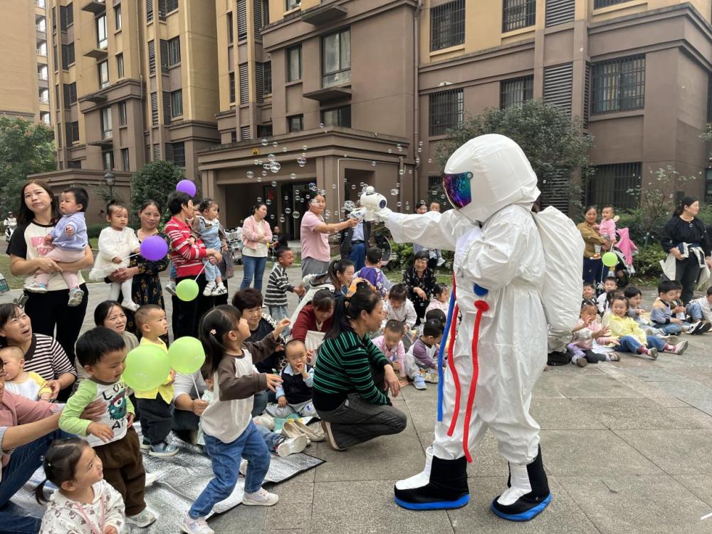 “妈妈,快看!那个宇航员在吹泡泡!”10月15日下午,衡山镇锦绣世家小区内人声鼎沸、热闹非凡,一大群家长带着孩子们围坐在广场上,参加“筑梦科技 创想未来”霍山县科学魔法秀进基层巡演活动。