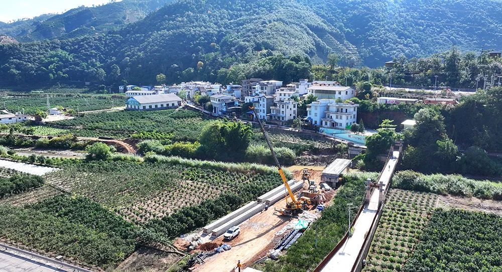 华溪镇甫甸社区下拖卓小组的进村桥梁正在加快建设(2024年12月16日摄)。