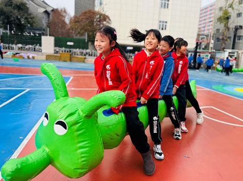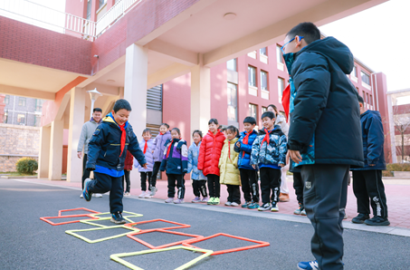 新华社客户端济南12月20日电(潘奕轩)12月19日上午,在山东大学附属中学趵突泉校区,下课铃声一响,学生们从教学楼冲到操场,尽情享受着15分钟“加长版”课间时光。跳皮筋、跳大绳、打地鼠、车轮滚滚、骑毛毛虫……学生们或合作或独立,玩着各种各样有趣的项目。